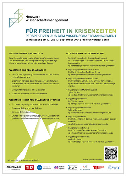 Mit seiner Jahrestagung richtet sich das Netzwerk Wissenschaftsmanagement an Akteure aus Hochschulen, Forschungseinrichtungen, Ministerien und Förderinstitutionen. In Workshops und Vorträgen werden Austausch gefördert und neue Maßnahmen und Kooperationen angestoßen.