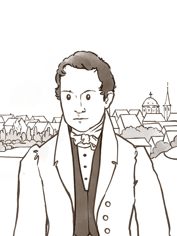 Stil und Farbigkeit nehmen Anleihen an der Zeichnung der Zeit zwischen Romantik und Biedermeier.