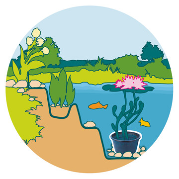 Für Produktverpackungen und Verkaufsprospekte habe ich Illustrationen von Ausstattung, Zubehör, Teichpflanzen und weiteren Gestaltungselementen erstellt und strukturiert in umfangreichen Bibliotheken bereitgestellt.