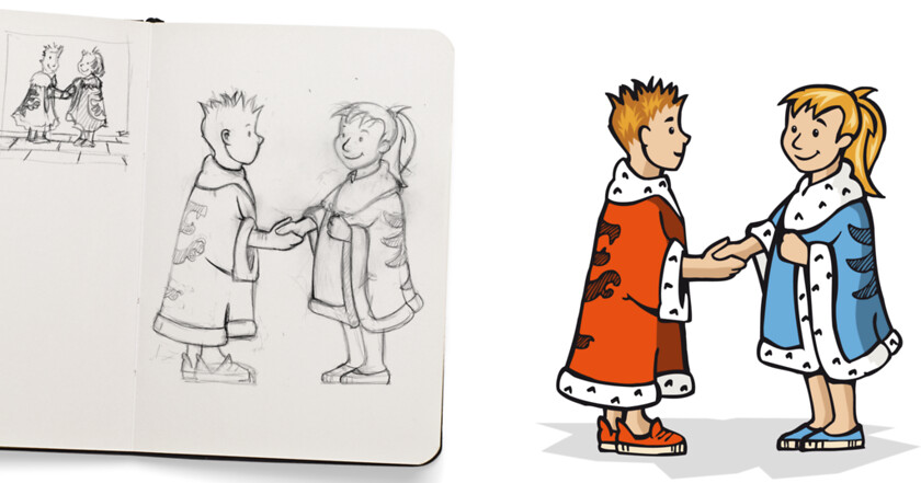 Laura und Baldi reisen auf einer Postkartenserie in Nürnbergs Vergangenheit