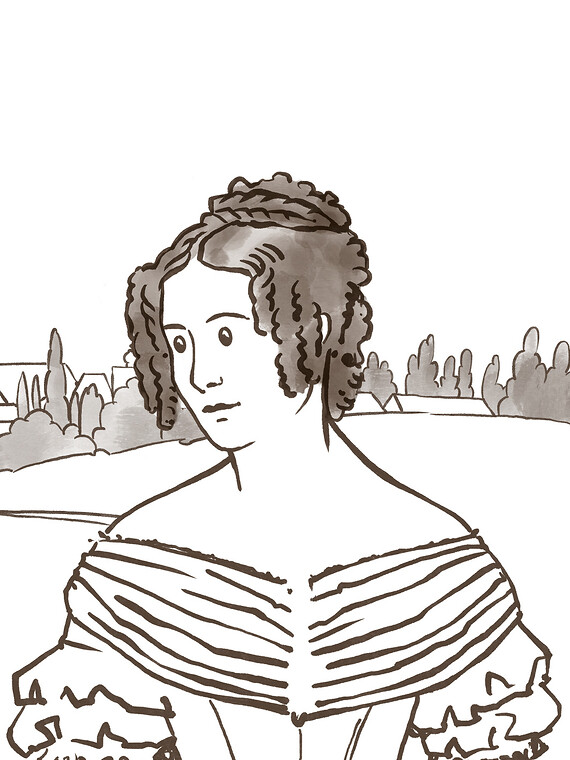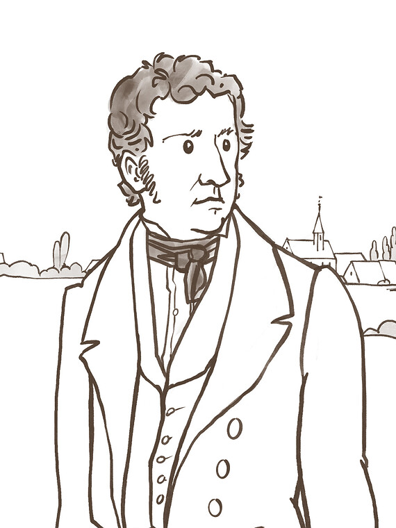 Stil und Farbigkeit nehmen Anleihen an der Zeichnung der Zeit zwischen Romantik und Biedermeier.