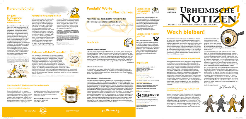 Die »Urheimischen Notizen« sind das Kundenmagazin des Naturprodukteherstellers zu aktuellen Gesundheitsthemen und erscheinen vier Mal jährlich.